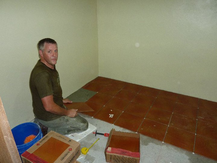 After the team arrived we took them on a tour of the facilities. Even though the project of revamping the interior of the hospital was already on the books, the team took it upon themselves to start the project of tiling the floors in our home. Their team leader, Mark Bonam, went into the city to purchase the tools they would need to get the job done.