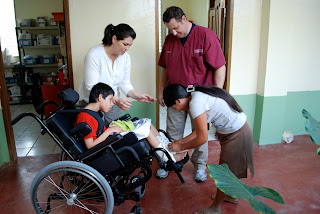 After a year of hoping and waiting we were finally able to give Jose’ a wonderful gift, and have it fitted to his body perfectly by Kevin Lalonde, a visiting physical therapist, and our nurse Michael Oliver.