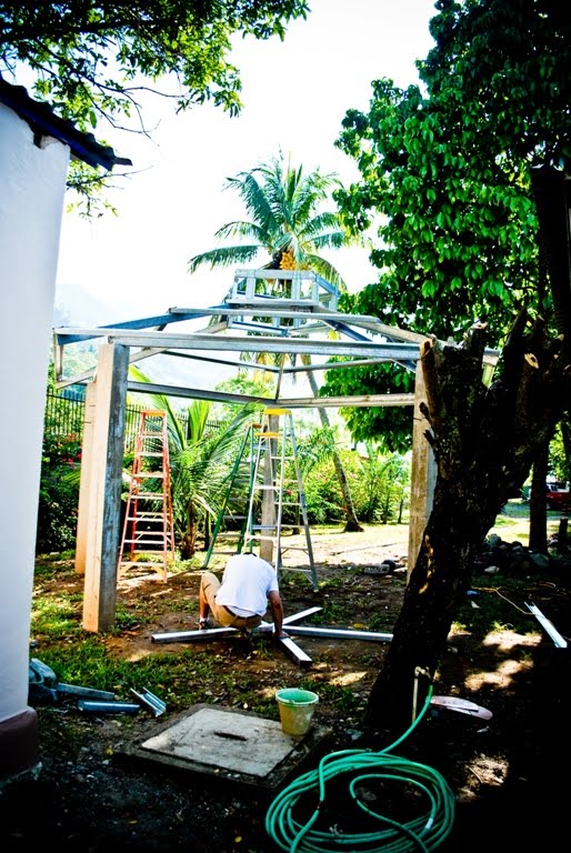 The medical team saw patients during our regular clinic hours on Monday and Tuesday. The education team went out to 4 village schools and delivered an amazing health program. The construction team added a much needed roof onto the front porch of the dorm increasing our living and dining area, they added a roof over our back porch to help keep the rain out of the back door and shade our scrub sink, and they roofed a new gazebo which will be a great area for our teams to relax.