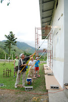 We all joined in the effort to paint the 3 unfinished buildings on the HHGlobal campus: the dorm, the Williams’ House and the Caseta (snack shack). The next 4 days were consumed with tape and scaffolding, spraying, rolling and brushing, all against the clock…and against the weather!